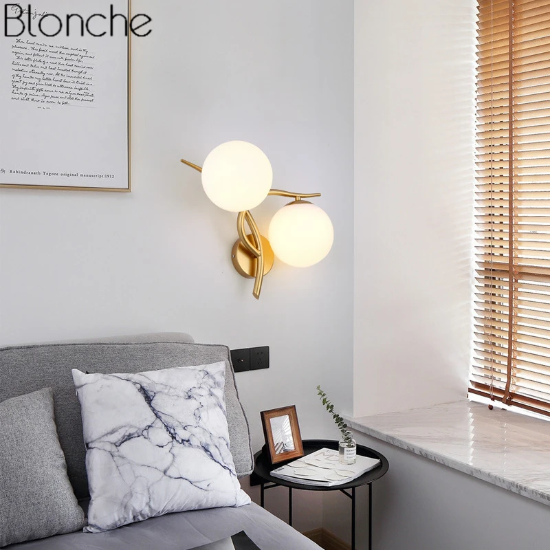 Modern Glass Ball Wall Lamp Led Gold Wall Sconce Loft Industrial Light Living Room Bedroom Stair Ho