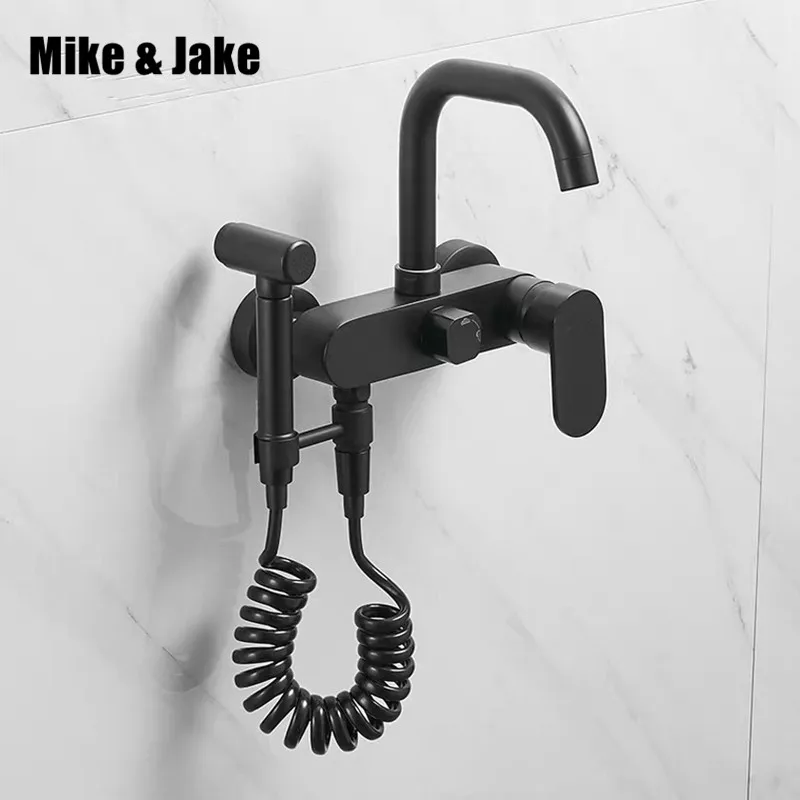 wall mounted black brass kitchen faucet with bidet shower wall type laundry pool faucet balcony mop