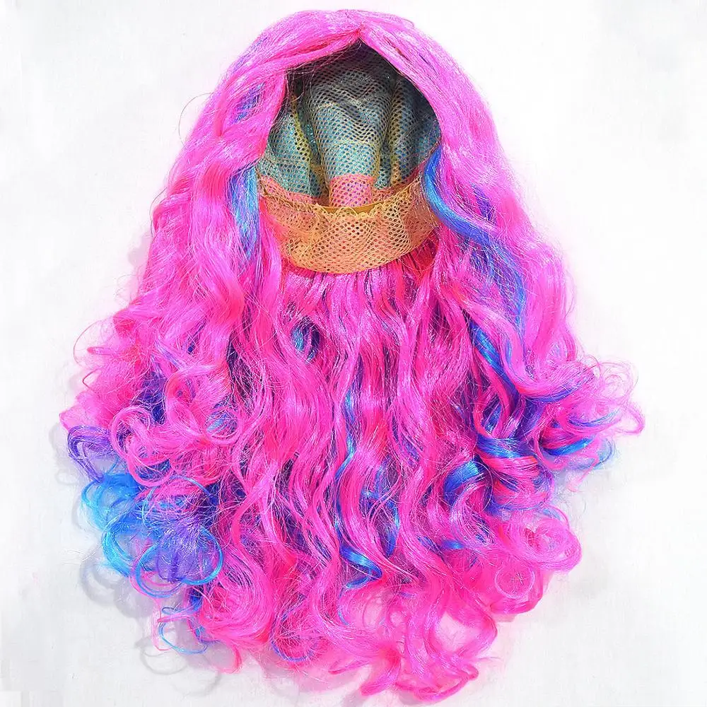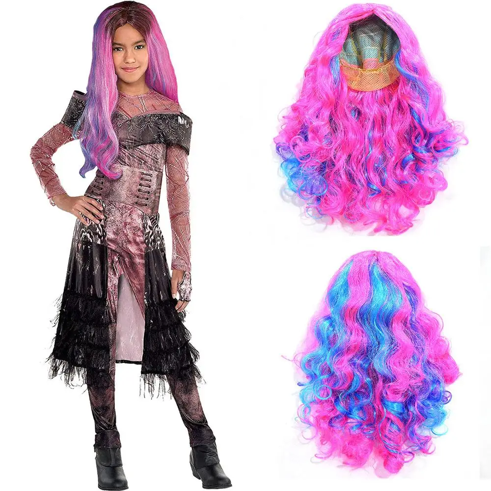 HOT SALE Kid Girl Descendants 2 Mal Bertha Maleficent Curly Live Evil Pink Cosplay Wigs Party Heat Resistant