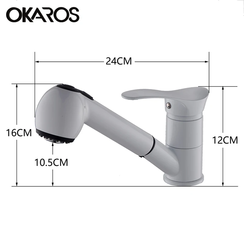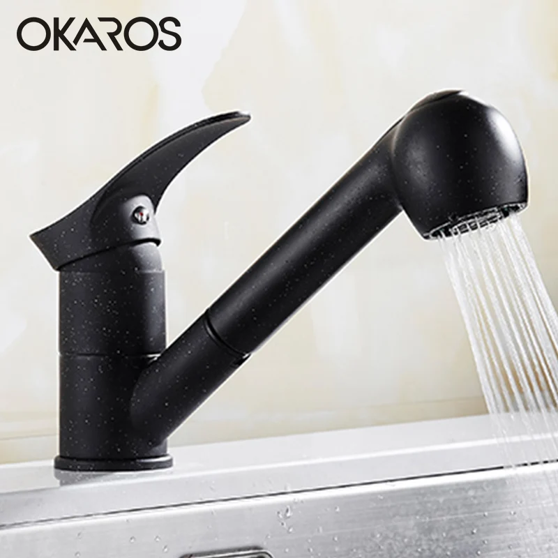 HOT SALE OKARO Pull Out Kitchen Sink Faucet Basin Mixer Tapo with Hand Shower Black Chrome Water Tap C038
